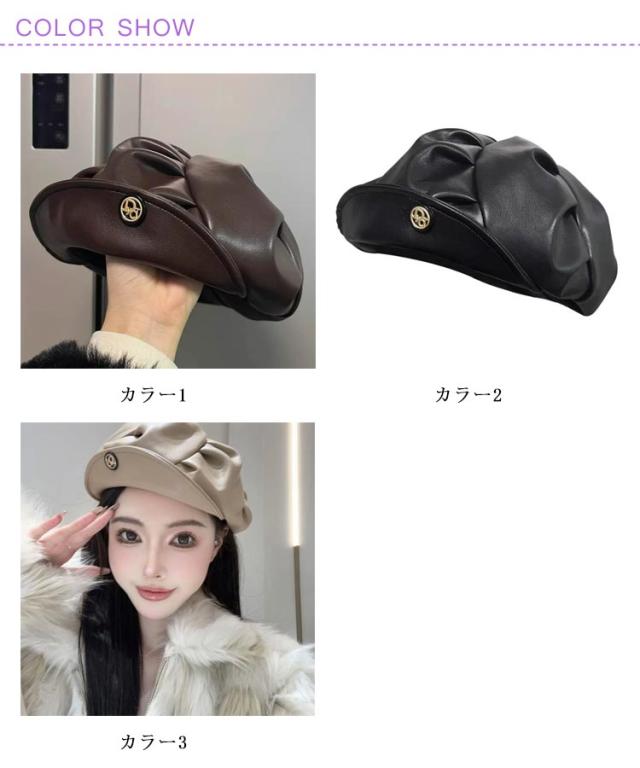 | アシンメトリー&PUレザーデザイン、レトロなベレー帽。 全3色、視覚的に小顔に見えデザイン。 トレンドスタイルに、いろんなお洋服と相性が良い。 ディリーファッションにちょっとした変化をつけたい時とかにもいいアイテムです。 | |