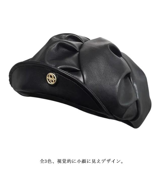 ベレー帽 合皮 レザー 帽子 レディース 可愛い アシンメトリー PUレザー PU ぼうし ボウシ 革 光沢感 お洒落 シック フェイクレザー インスタ映え 10代 20代 30代 アシンメトリー 原宿系
