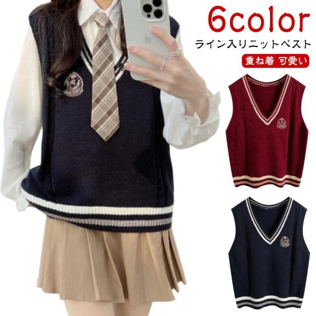 女子 スクールベスト セーター ニットベスト 高校 ライン入り 通学 ホワイト 制服 制服ベスト Vネック 中学 スクール 学校 ニット 夏 秋 冬 学生服 ライン入り スクール ベスト レディース 女子中学生 女子高生 発表会 入学式
