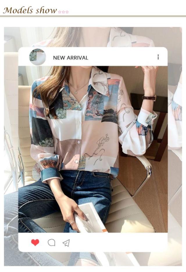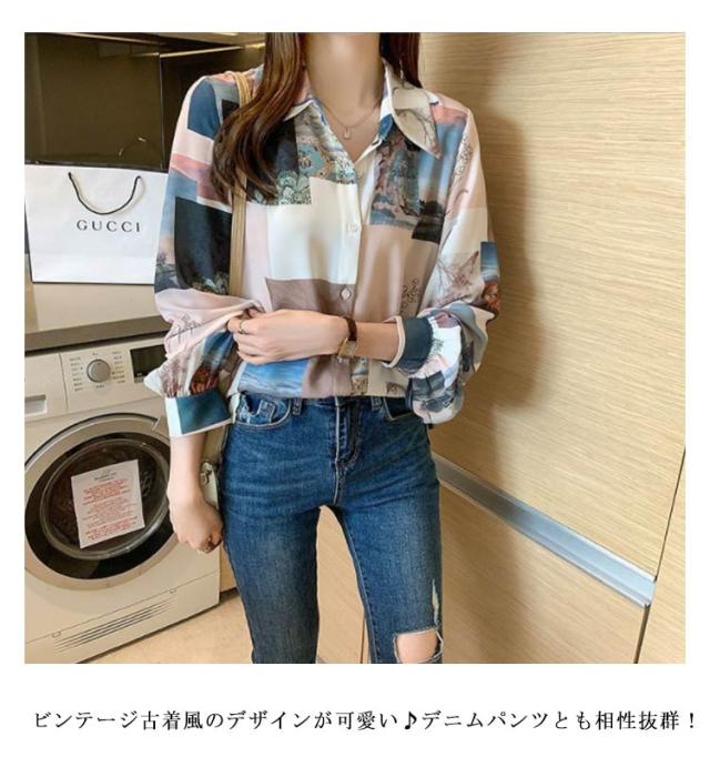 長袖 総柄シャツ アシンメトリー 前開き アートプリント 花柄シャツ 春夏秋 おしゃれ 春秋 オフィス ブラウス トップス シャツブラウス プリント 総柄シャツ 配色 レトロ 日焼け止め 軽量 シャツ 襟付き 体型カバー 通勤 30代 40代 50代