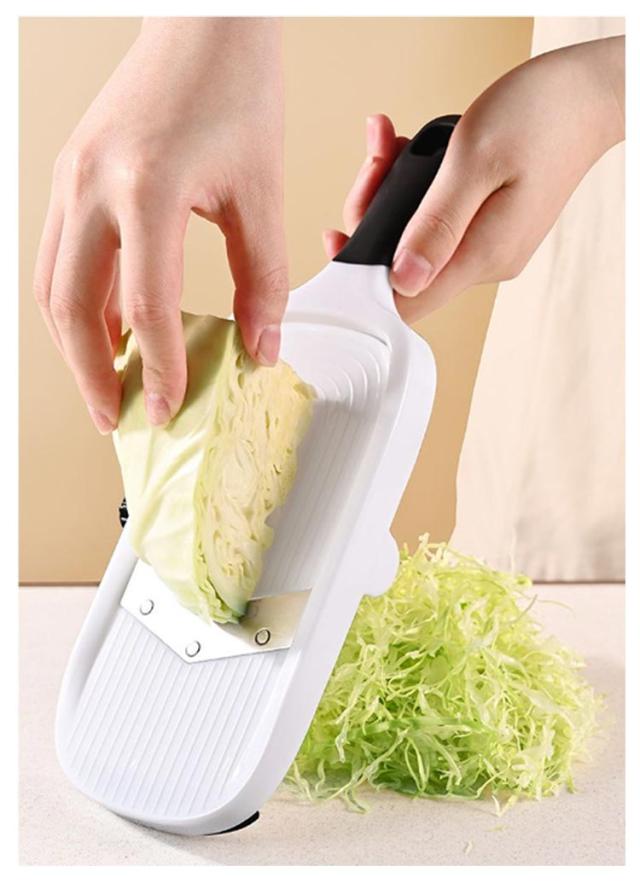 | 手間をかけずにキレイに千切りできる野菜調理器! 新設計の歯で力を入れずに使える、切れ味のするどいステンレス刃です。 キャベツを一気にスライスできる幅広タイプ。 軽い押し引き両動作でとってもスピーディー♪ キャベツ以外にも大根や玉ねぎ、じゃがいもなどいろいろな野菜に使用できます。 | |