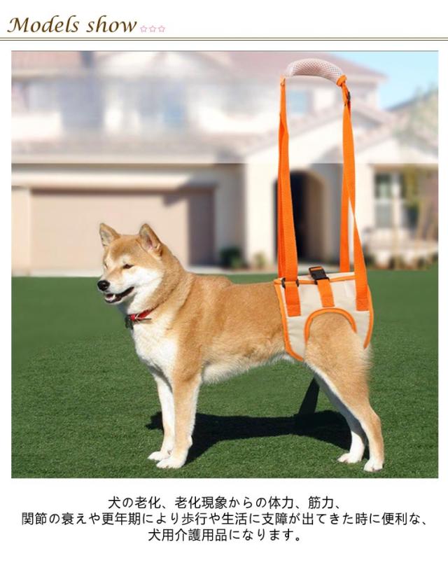 | 犬の老化、老化現象からの体力、筋力、関節の衰えや更年期により歩行や生活に支障が出てきた時に便利な、犬用介護用品になります。 犬の体力が衰えることで、看護や介抱、犬の看病が必要になる、お出かけの時に歩行補助が必要になった時に便利です。 後脚を支えるお出掛けに使用出来る、介添えに便利な後ろ脚を支える老犬介護用品。 ワンタッチのバックルで着脱簡単×腰回りはマジックテープで調節可能! | |
