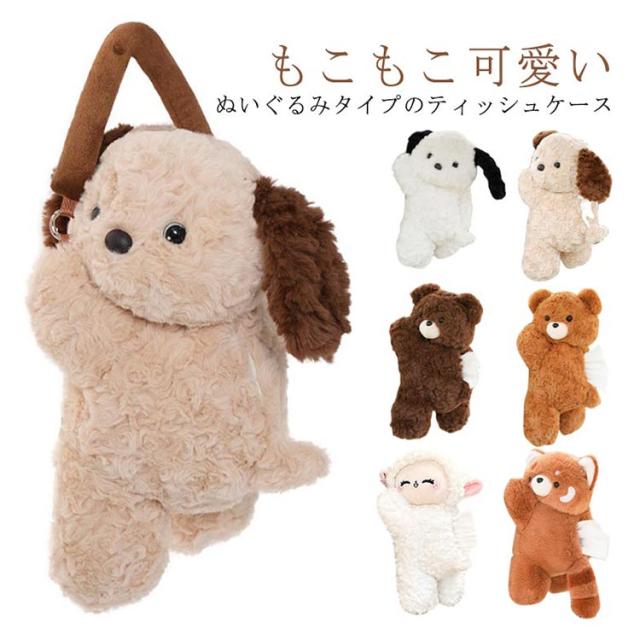 | もこもこ可愛いぬいぐるみタイプのティッシュケース。 ふわふわした手触りがたまらない、可愛い動物でティッシュを使う度に癒されます。 車やキッチン、洗面所など「掛けられたら便利」なところにバッチリなティッシュケースです。 何気ないティッシュボックスが、お部屋の可愛いインテ リアになります。 | |