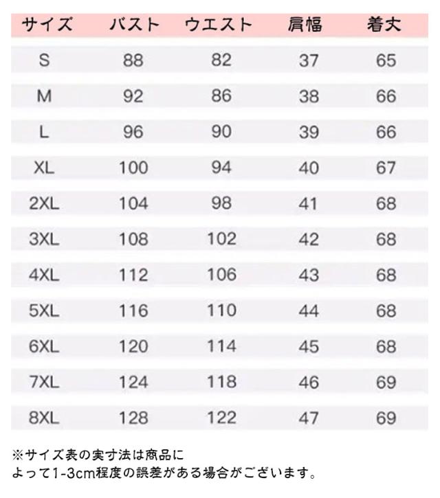 | サイズ | S M L XL 2XL 3XL 4XL 5XL 6XL 7XL 8XL |