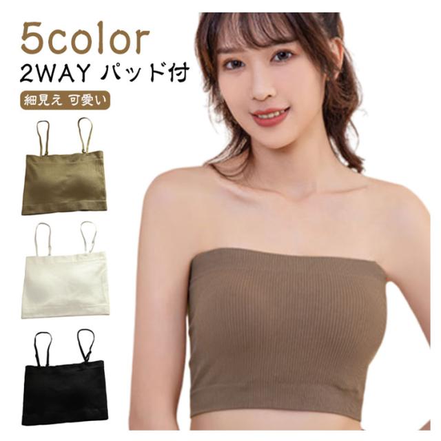 | 【2WAY】【パッド付】【5color】 伸縮性に優れた生地が身体に程よくフィットし、ストレス無く着られる。 シンプルデザインでどんなシーンでも使える♪ 通気性に優れているので蒸し暑くなく、固定バストカップでズレる心配なし、ノンワイヤーでストレスゼロの着心地。 ベアトップ風の直線ラインで見えてもおしゃれ! | |