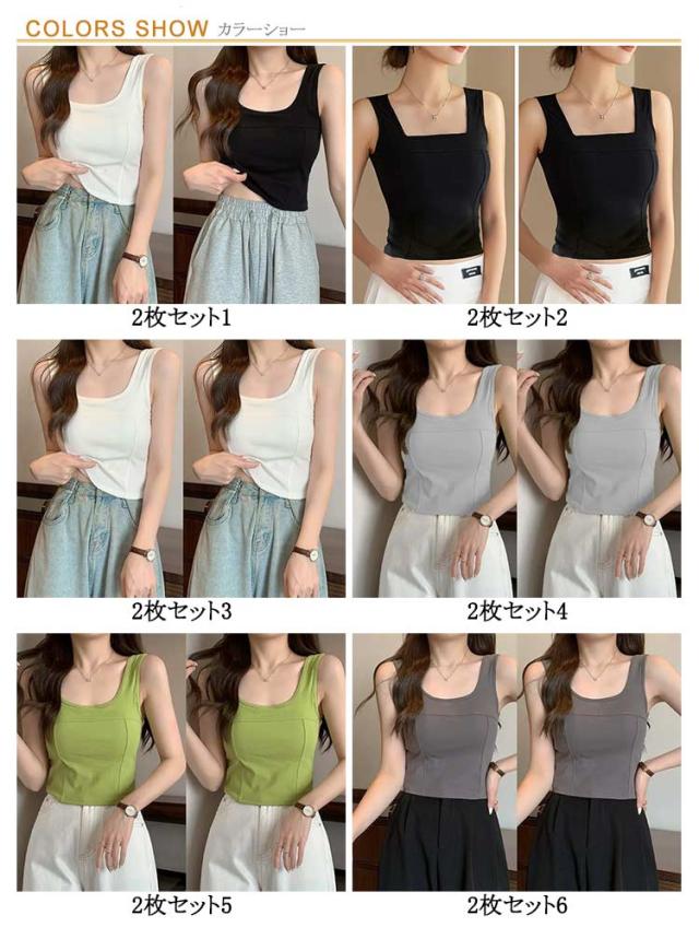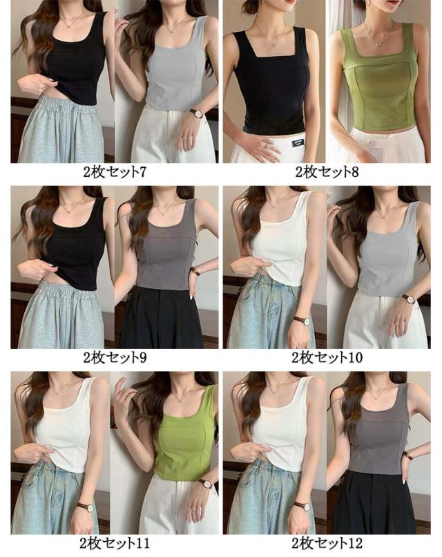 | 2枚セット!肩周りをのびのび動かしやすいタンクトップ。 体にぴったりフィットし、美シルエットを演出! 長時間着用しても楽でずれにくく着心地が抜群◎ とても着やすい、様々な体型にも対応可能です。 生地は薄すぎず、厚すぎずのオールシーズンに着回せることもポイント! 締めつけ感も少なく、柔らかな風合いが特徴のアイテムです。 適度な厚みとホールド感のある素材を使用し、デイリー使いにも可愛いトップスです。 | |