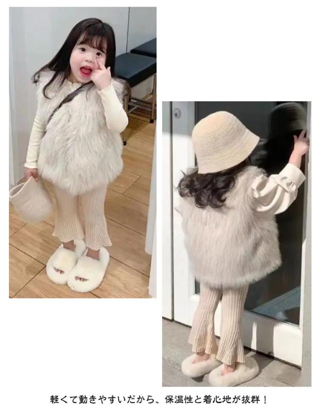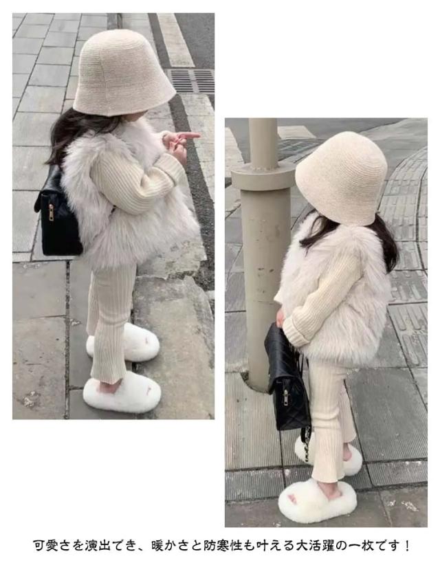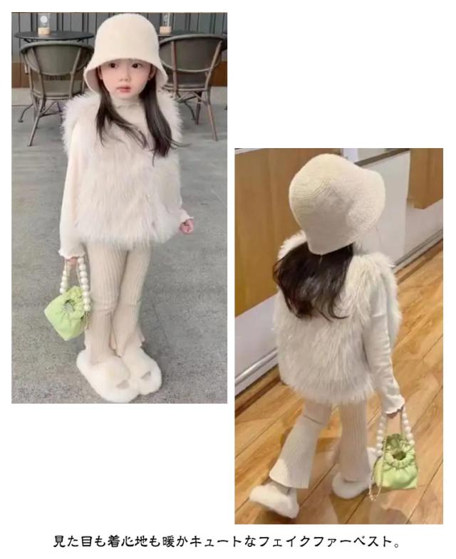 | 【80〜150cm】【キッズ・ファーベスト】 お子さんの可愛さをより引きたせてくれます。 見た目も着心地も暖かキュートなフェイクファーベスト。 軽くて動きやすいだから、保温性と着心地が抜群! 可愛さを演出でき、暖かさと防寒性も叶える大活躍の一枚です! | |