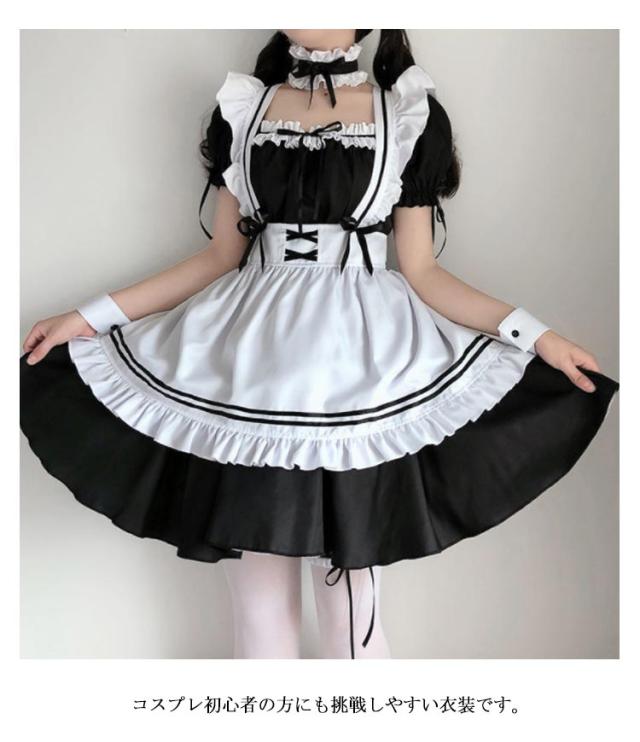 ロリータ コスプレ コスチューム 8点セット 文化祭 女装 アニメ メイド服 かわいい コスプレ衣装 ロリータワンピース 衣装 エプロン 仮装パーティー フリル イベント ハロウィン エプロン フリフリ 髪飾り付き