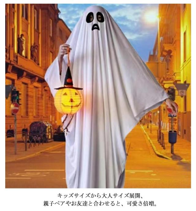 | 被るだけ!シンプルで可愛らしいおばけに。 コスプレ初心者にオススメのシンプルで可愛いおばけポンチョ。 キッズサイズから大人サイズ展開、親子ペアやお友達と合わせると、可愛さ倍増。 脇は縫われているので袖のように手を通せます。 お客様の顔にぴったりフィットするように、目の部分はあえてカットしていない仕様です。届いてから、ご自分でカットしてください。 ハロウィーン、クリスマス、仮面舞踏会、イベント、パーティー、仮装、コスプレに最適です。 | |