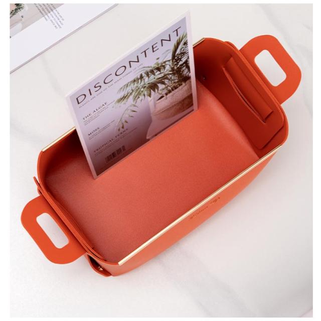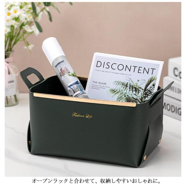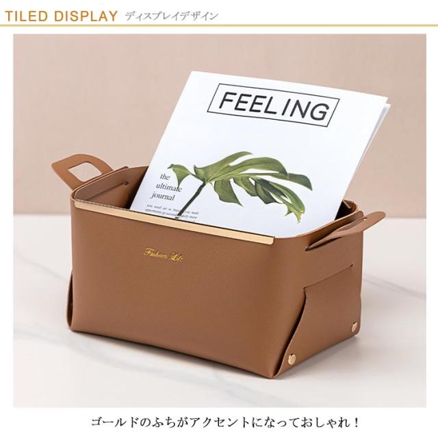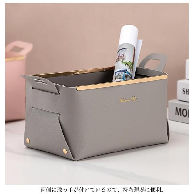 | 高級感のある卓上収納ケース。 ゴールドのふちがアクセントになっておしゃれ! 両側に取っ手が付いているので、持ち運ぶに便利。 使わない時は折りたたんで省スペースに収納できます! 化粧品や手紙、リモコンの収納など使い方も色々! オープンラックと合わせて、収納しやすいおしゃれに。 シンプルで洗練されたデザインがいつもの見慣れた空間をぐっとおしゃれに◎ | |