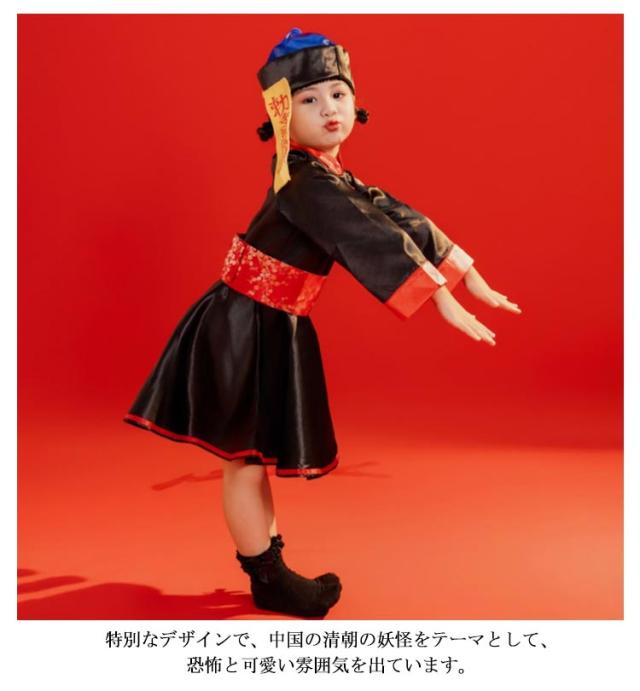 ハロウィン コスプレ 4点セット 子供用 ゾンビ キッズ 衣装 120 130 140 キョンシー キョンシー ハロウィン衣装 中国の妖怪 ホラー コスプレ衣装 演出服 仮装 可愛い 女の子 チャイナ服 コスチューム仮装