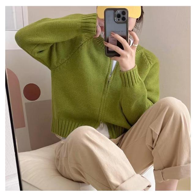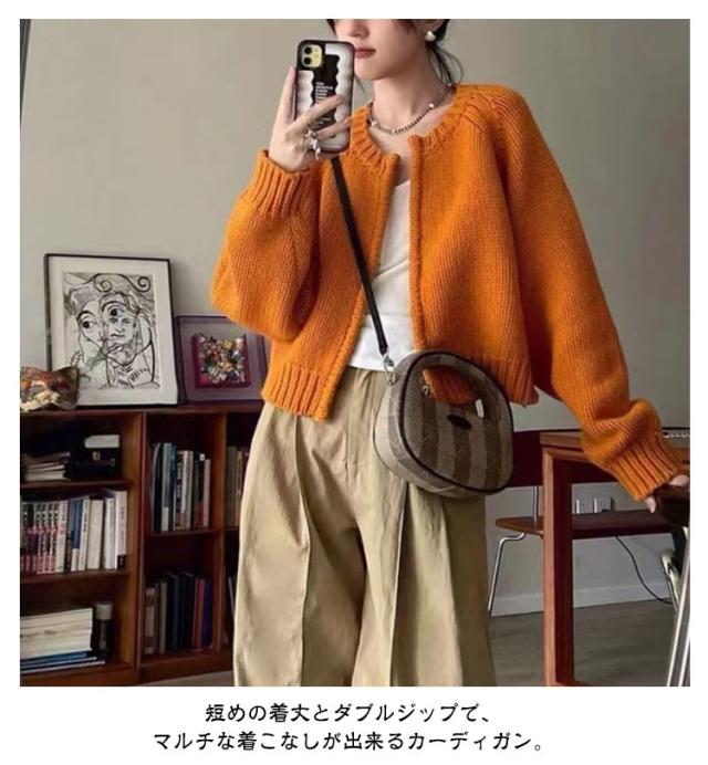 | 【ファスナー開閉】【8colors】 短めの着丈とダブルジップで、マルチな着こなしが出来るカーディガン。 程良い厚みのニットで、寒い季節にもバランスよくレイヤードできる優秀な1着です。 フロントのファスナーで着脱簡単 シンプルながらもスタイリッシュなデザインでどんなコーディネートにもマッチします | |