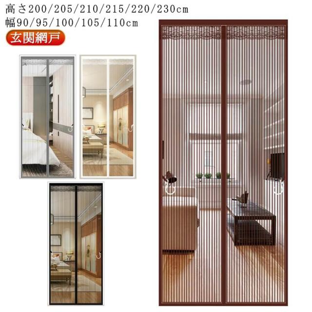 ドア用網 玄関網戸 高さ200/205/210/215/220/230cm 幅90/95/100/105/110cm 蚊帳カーテン カーテン式 簡単 マグネット式 取り付け 虫対策 マンション 賃貸 暑さ対策