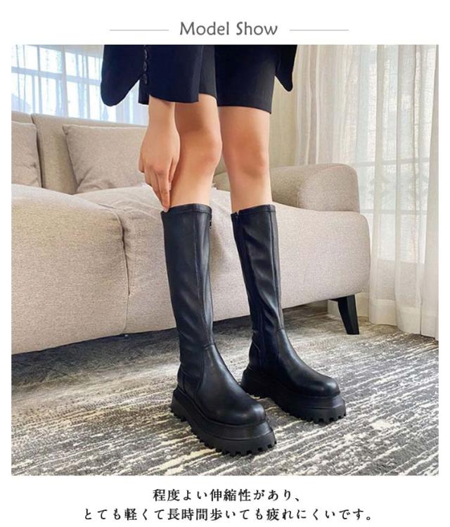 ニーハイブーツ 厚底 シューズ ロングブーツ 2タイプ丈 膝下丈 靴 サイドジッパーブーツ ストレッチ ショートブーツ 美脚 長靴 ブーツ おしゃれ 歩きやすい 厚底 秋冬 美脚 ショートブーツ 可愛い カジュアル 防寒 暖かい