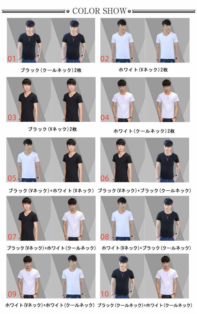【2枚セット】 メンズ インナートップス カットソー アンダーシャツ 【2枚セット】 インナーシャツ 半袖 丸首 Vネック 白Tシャツ 通気性 吸水性 クルーネック 大きいサイズ 男性用 2枚組 黒 肌着 下着 白 紳士 無地 シンプル オフィス 仕事