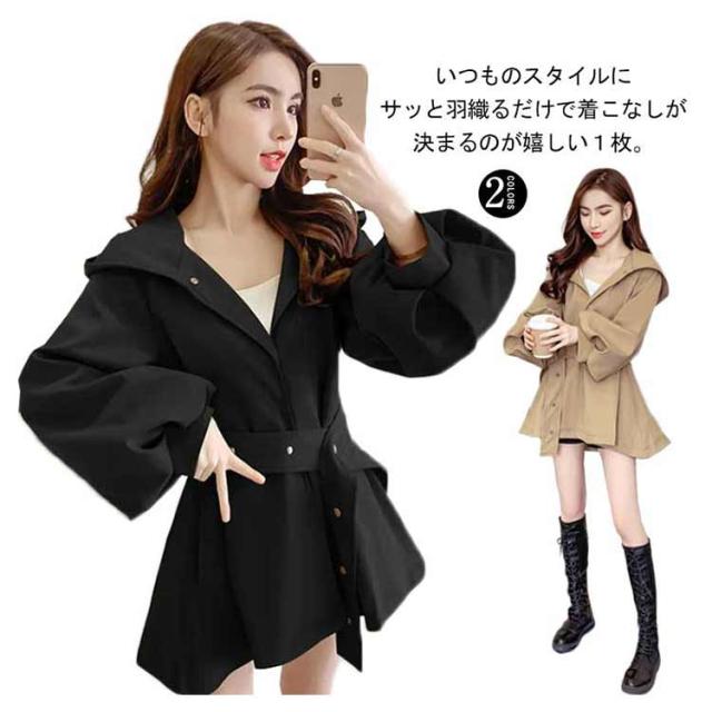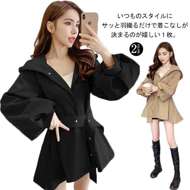 スプリングコート トレンチ フード付き ベルト付 コート 秋 アウター レディース Aライン シンプル 春 コート スプリングコート ゆったり 体型カバー ジャンパー カジュアル フォーマル 無地