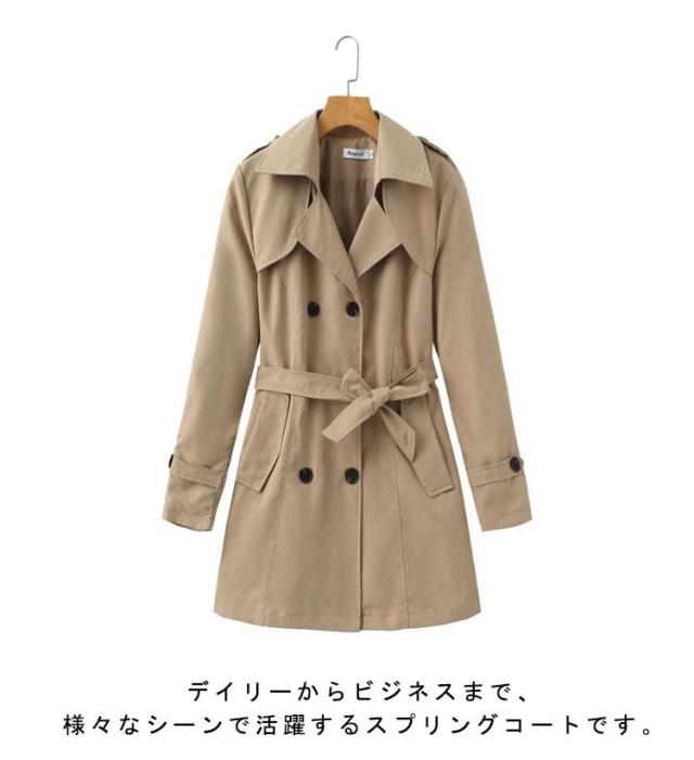 | デイリーからビジネスまで、様々なシーンで活躍するスプリングコートです。 高品質のポリエステル生地で作られており、丈夫でしわができにくい、UVカット、防風、保温ができます。 女性らしい襟のデザインが人気のポイント。 シンプルな無地のデザインなので通勤やオフィス、ビジネスコートにもおすすめです。 | |