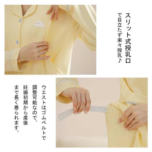 | 【マタニティパジャマ】 ママにも赤ちゃんにも優しいコットン素材。抱っこで赤ちゃんが汗をかいても快適。 通気性もよく、着心地抜群◎ 一年中快適に着ていただけます。 ウエストはゴムベルトで調整可能なので、妊娠初期から産後まで長く着られます。 スリット式授乳口で目立たず楽々授乳♪ 前開きデザインなので、検査や着替えが多い産院着におすすめです。 | |