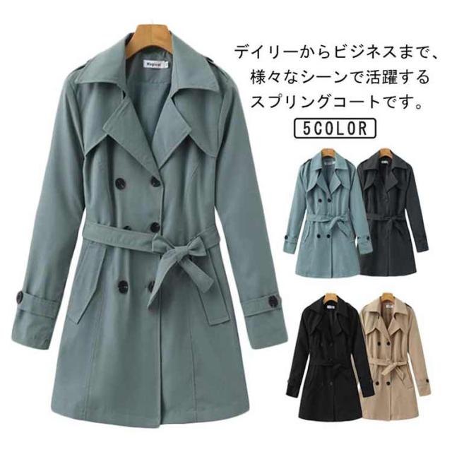 ビジネスコート 通勤 レディース スプリングコート ミディアム丈 春コート 秋服 無地 スプリングコート トレンチコート アウター ビジネス 大きいサイズ 通勤 シンプル フォーマル
