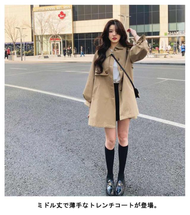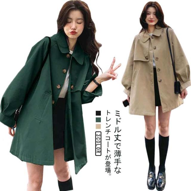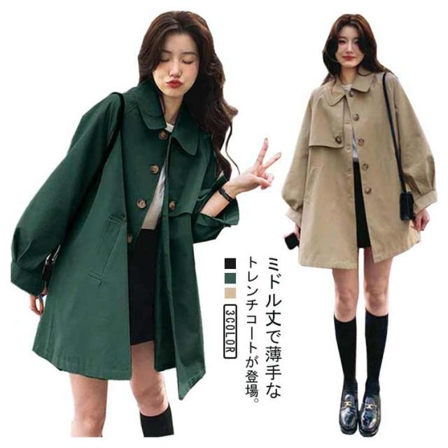 トレンチコート レディース アウター コート ジャンパー 長袖 オフィス 薄手 秋 冬 トレンチコート ミドル丈 ジャケット 就活 ミドル丈 おしゃれ 裏地あり シンプル 上品 ゆったり 春 体型カバー 通勤 大人