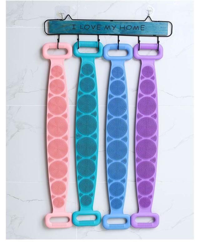 | ロングタイプのシャワーブラシ。両面使ってリフレッシュ!マッサージしながらボディを洗うことができます。 シリコン製だから柔らかく、肌を傷つけない。 ハンドル付きだから持ちやすい・洗いやすい。 やわらかブラシで毛穴の汚れをかき出すように洗えるので、気になる背中やお尻のブツブツに効果的。 垢すりブラシとしても使えます。 | |