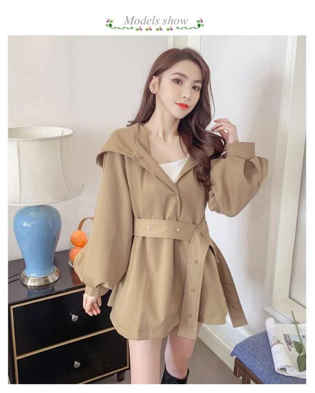 スプリングコート ベルト付 スプリングコート コート バルーンスリーブ 春 アウター コート レディース トレンチ 秋 Aライン ジャンパー ゆったり 体型カバー シンプル カジュアル フォーマル 無地