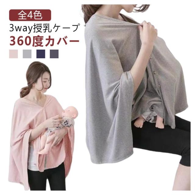 | 3way授乳ケープ 360度カバー 全4色 【3wayで使える授乳ケープ】 授乳ケープは前後両方使えてストールにもなる、便利な3way仕様! 5か所のボタンで、授乳しやすいようご自身にあわせて着用ができます。 また、授乳期間が終わってからも、ポンチョや羽織、ストールなど、ファッションアイテムとしても長くご愛用できるよう、授乳服に見えないシンプルなデザインにこだわりました。 【360度グルっと視線をカバー】 授乳のタイミングはお子様によって違います。 授乳スペースなどが見つけられない時でも授乳ケープがあれば大丈夫! レストランや公園、人目が気なる様々な場所でお使いいただけるよう、360度しっかりカバーできるサイズで設計しています。 裾周りを大きくデザインしていることで、新生児から卒乳の時期まで、お子様が大きくなっても問題なくご使用できます。 【コットン混のやさしい肌ざわり◎】 生地はコットン混の肌にやさしい素材を採用。肌が敏感な小さなお子様も安心です。 薄手で軽く、季節問わずお使いいただけます。様々な用途に長く使えるので、洗い替えに複数購入もおすすめです。 【コンパクトに持運びOK】 お子様とのお出掛けにはかかせない授乳ケープ。 コンパクトに持ち運べることもポイントです。当社の授乳ケープは、薄手なので小さく折り畳むと、バッグ内にもスッキリ収まりかさばりません。 荷物を少しでも軽くしたい!そんな方にもピッタリです。 また、授乳以外の用途としては、ベビーカーのひざ掛けや、お子様のお昼寝ブランケットにもなり、幅広く活躍してくれます。 | |