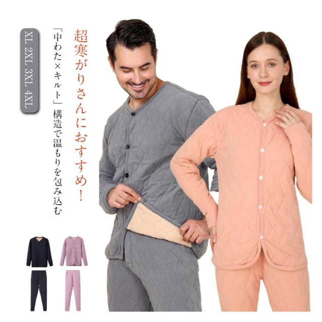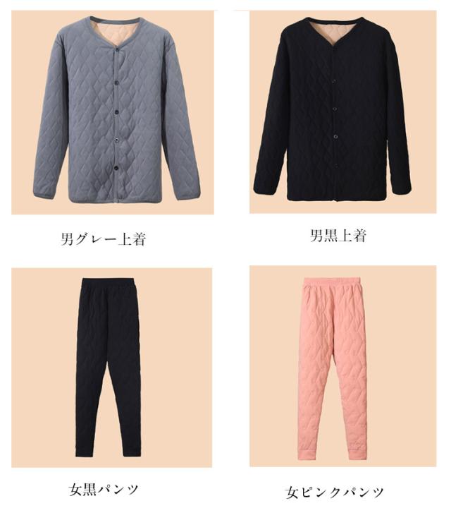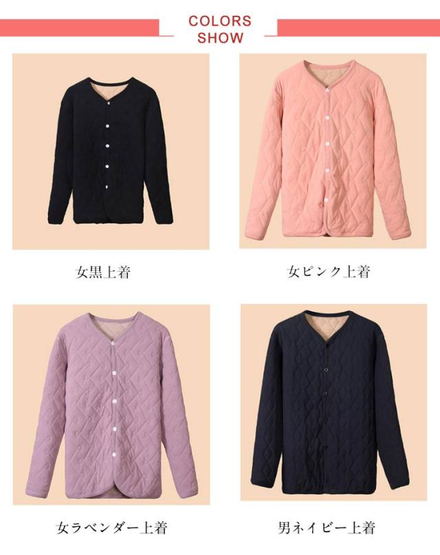 パジャマ Vネック キルト 暖かい 裏起毛 ルームウェア 肌着 ロングパンツ 両面起毛 下着 あったか 前開き カーディガン キルティング トップス あったかインナー 厚地 秋冬 単品 メンズ レディース 敬老の日