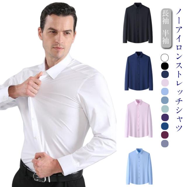 長袖 ストレッチ ノンアイロンシャツ 半袖 ワイシャツ 伸縮 メンズ ワイシャツ 大きいサイズ ビジネスシャツ Yシャツ 形態安定 仕事 営業