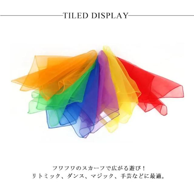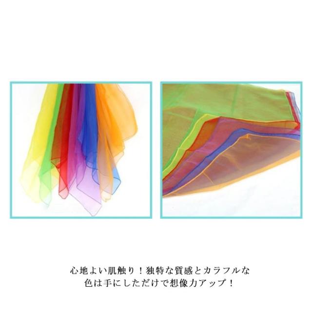 正方形 6色セット スカーフ シフォン ダンス スカーフ遊び 赤ちゃん モンテッソーリ 四角 カラフル ジャグリング 介護 体操 リトミックスカーフ リトミックスカーフ 子ども リハビリ オーガンジー 知育 保育 リズム運動
