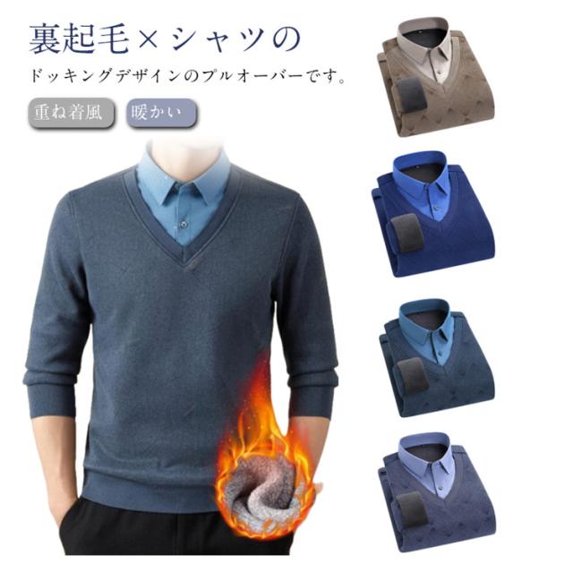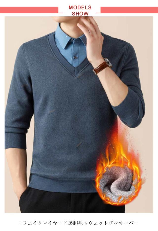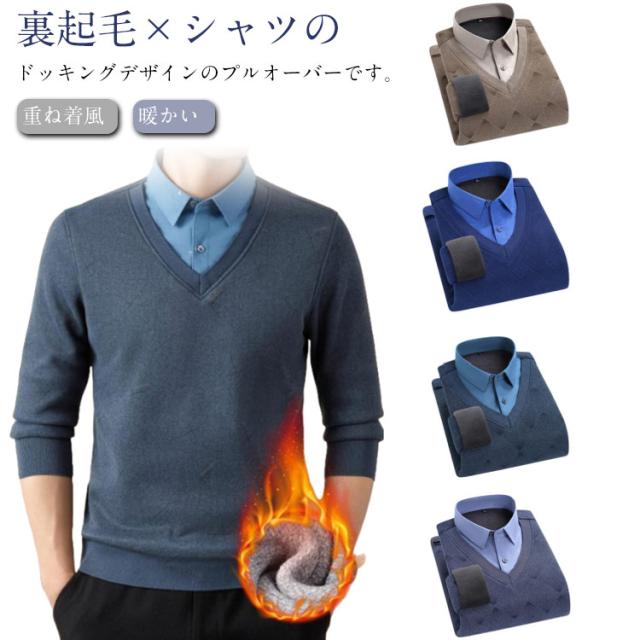 スウェット カジュアル 裏起毛 シャツ 長袖 フェイクレイヤード カットソー 大人 シャツドッキング 異素材切替え プルオーバー 裏起毛 メンズ 暖かい 防寒 春 秋