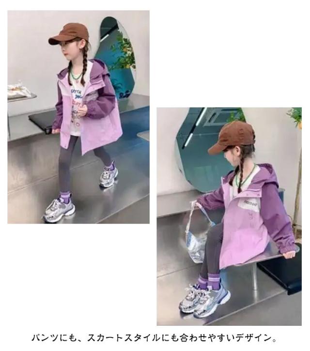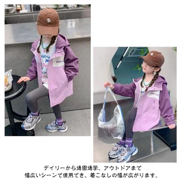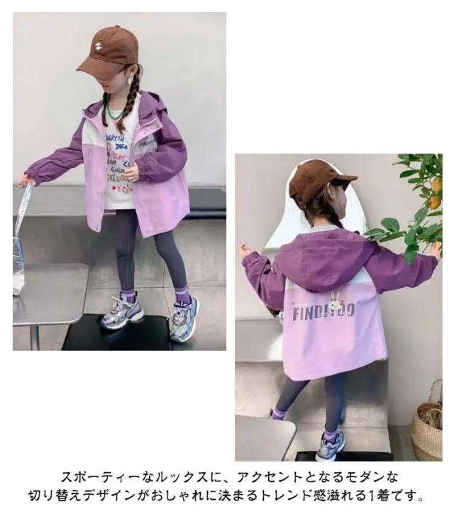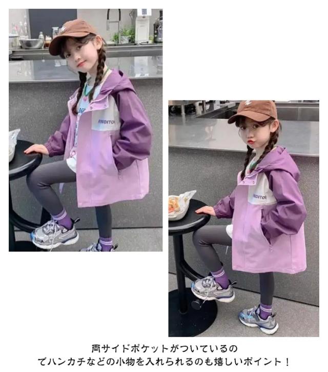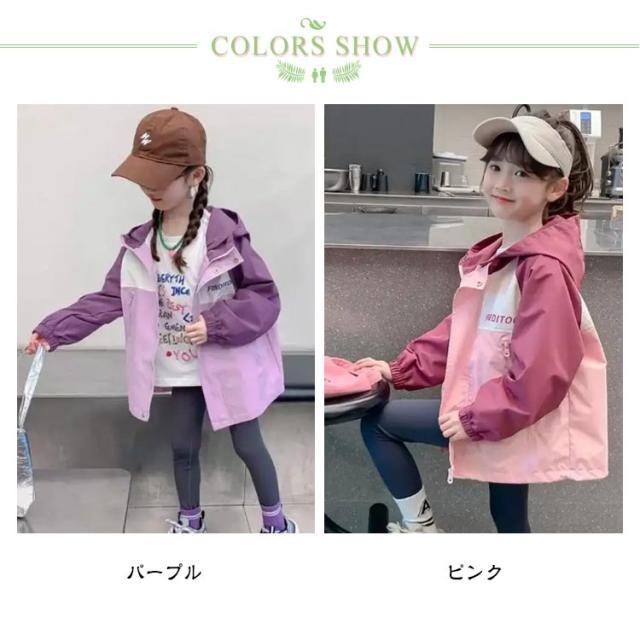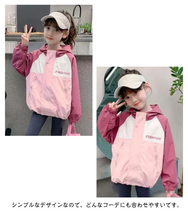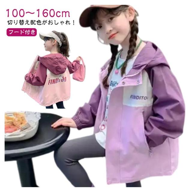 フード付き ジップアップパーカー ウィンドブレーカー キッズ キッズ アウター 女の子 子供服 普段着 100 110 120 160cm 140 パーカー 150 おしゃれ ジャケット 春 秋 小学生 女児 ジュニア かわいい ブルゾン カジュアル