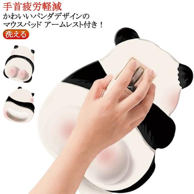 マウスパッド リストレスト 癒しデザイン 送料無料 リストレスト一体型 低反発 柔らかい リストレスト付マウスパッド 手首疲労軽減 送料無料 クッション性 アームレスト パンダ柄 かわいい マウスパット 裏ラバー 洗える