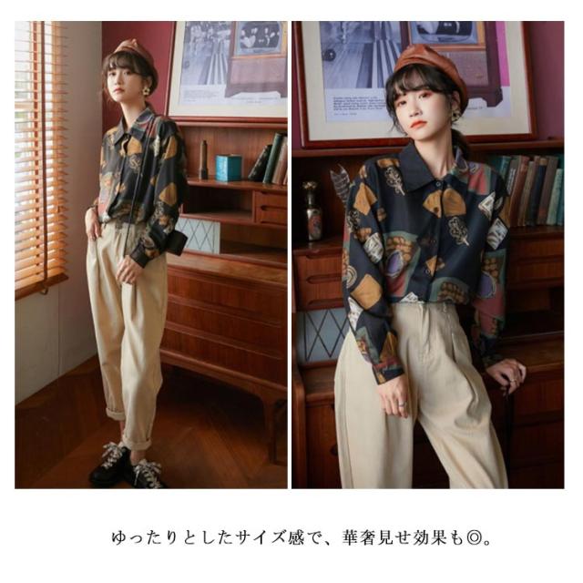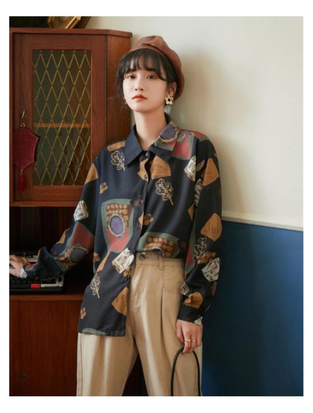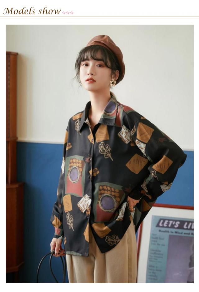 レトロ レディース ストリート シャツブラウス トップス 韓国ファッション ヒップホップ 長袖シャツ シャツ 開襟シャツ ヴィンテージ風 ライトアウター カジュアル 韓国 レトロ 衣装 ダンス 軽量 薄手 春夏秋 ブラウス