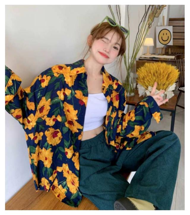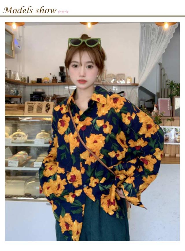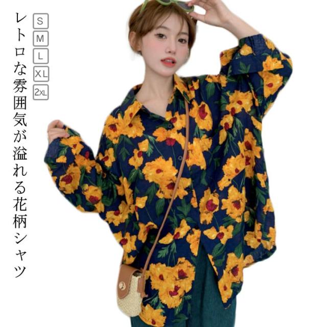 ブラウス ダンス衣装 長袖 花柄 花柄 韓国 アロハシャツ レトロ ストリート系 レディース カジュアルシャツ 原宿系 ストリート系 ヴィンテージ風 総柄シャツ ダンス衣装 春夏 秋冬 トップス ブラウス 体型カバー 個性的 おしゃれ 日焼け止め