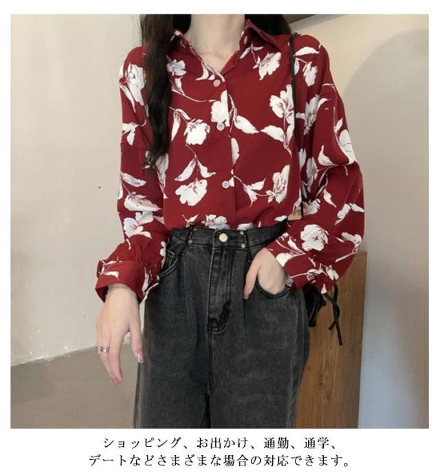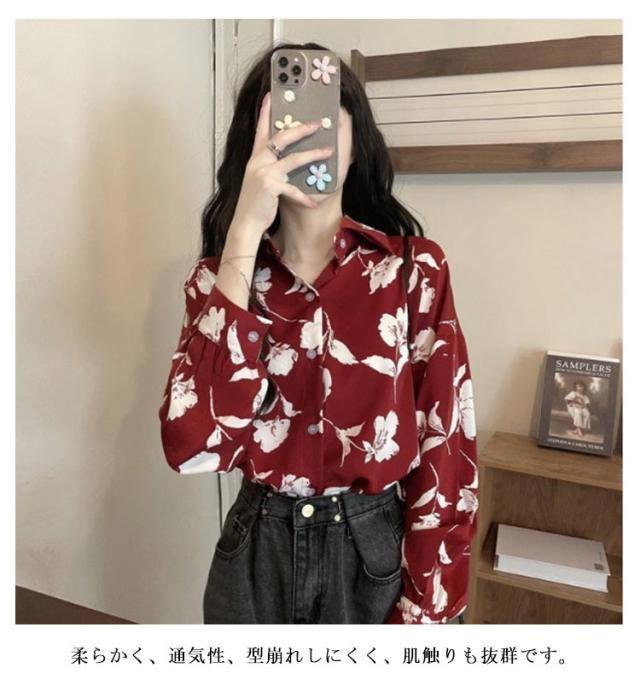 秋冬 長袖 アロハシャツ 原宿系 総柄シャツ レディース ボタニカル柄 カジュアルシャツ ブラウス レトロ ダンス衣装 ストリート系 ヴィンテージ風 レトロ 花柄 春夏 シャツ トップス ブラウス 体型カバー 個性的 おしゃれ 日焼け止め