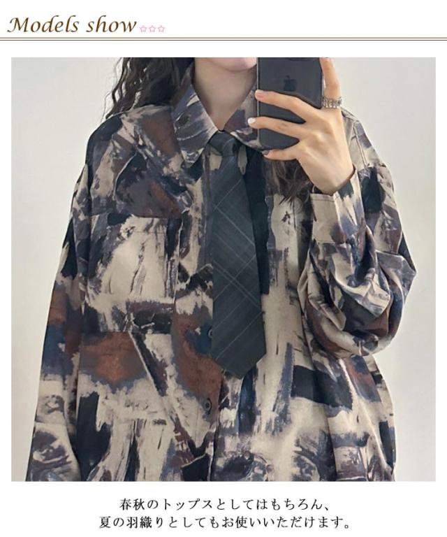 | さらっとした生地感の長袖シャツで、ビンテージ古着風のデザインが可愛い♪ 春秋のトップスとしてはもちろん、夏の羽織りとしてもお使いいただけます。 ゆったりとしたサイズ感で、華奢見せ効果も◎。 ラフなシルエットとレトロデザインでカジュアルコーデにもよく合う一着です。 ※ネクタイは別売りです。 | |