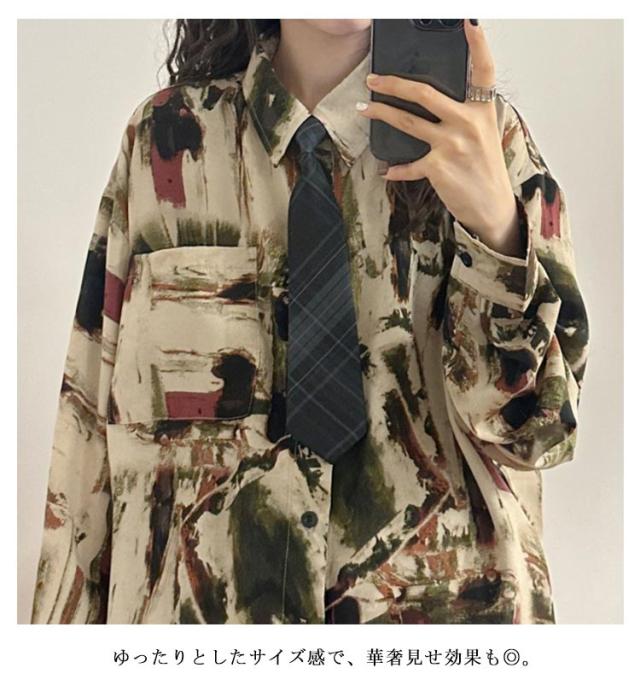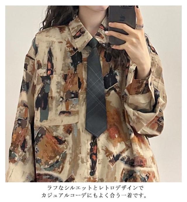 春夏 ブラウス 長袖 水彩画風 水彩画風 長袖 シャツ レディース レトロ ストリート系 ゆったり トップス ダンス 衣装 ヒップホップ 韓国 秋冬 原宿系 ユニセックス 個性的 おしゃれ