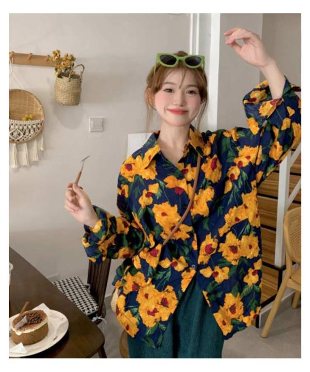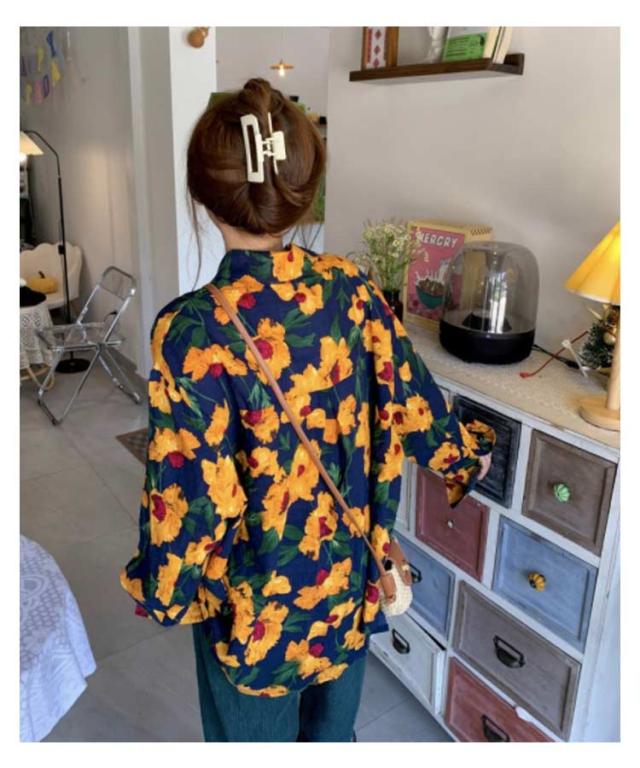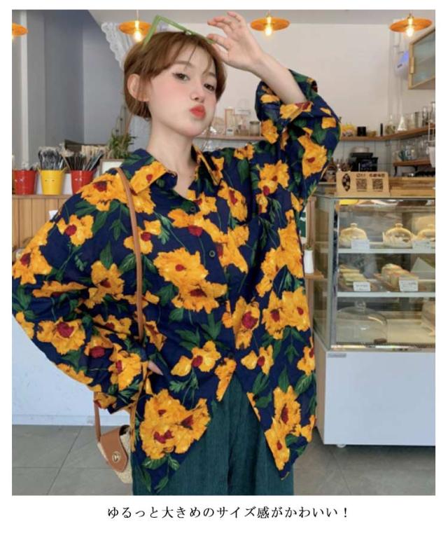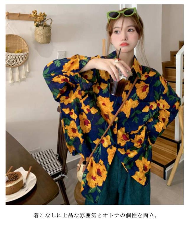 総柄シャツ レディース シャツ 長袖 ヴィンテージ風 カジュアルシャツ 花柄 花柄 ストリート系 ダンス衣装 ブラウス アロハシャツ ストリート系 原宿系 韓国 春夏 レトロ 秋冬 トップス ブラウス 体型カバー 個性的 おしゃれ 日焼け止め