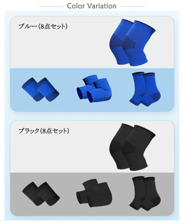 スポーツサポーター 8点セット 吸汗性 ジュニア 子供用 手首 プロテクター 足首 膝痛 肘 膝パット 固定 ひざ スポーツサポーター 怪我防止 ストレッチ 通気性 膝サポーター 膝当て アウトドア バレーボール キッズ 山登り 部活 小学生 中学生 高校生 バスケットボール