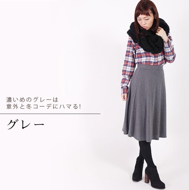 ひざ下丈のフレアスカートはフェミニンに着こなせるアイテムです。