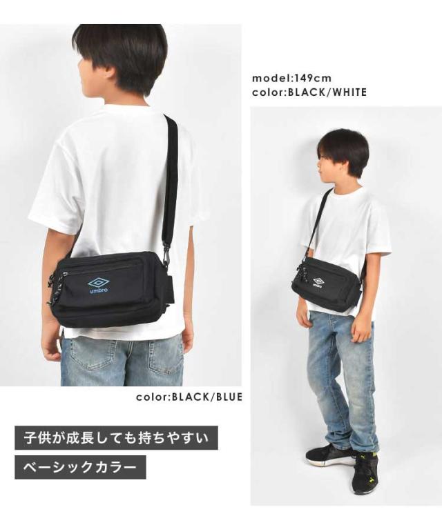 ショルダーバッグ umbro アンブロ 斜めがけバッグ キッズ 男の子 小学生 2way 軽量 スポーツ ブランド ボディバッグ 男子 中学生 子供 小さい スリム かっこいい シンプル おしゃれ 肩掛け カバン ロゴ ペットボトル A5 Switch スイッチ 入る ファスナー ポケット 収納 黒