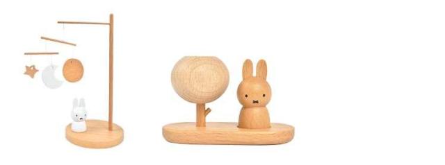 日本で最も歴史の長い木のおもちゃメーカー「ニチガン」からシンプルなデザインと木の質感にこだわったミッフィー木製雑貨が登場。アートを見つめるミッフィーのデザインが可愛い、ナチュラルな木製の卓上モビールです。置き型なので設置も簡単、お家の玄関やリビングルームのアクセントにぴったり。かわいいパッケージ入りでプレゼントにもおすすめです!