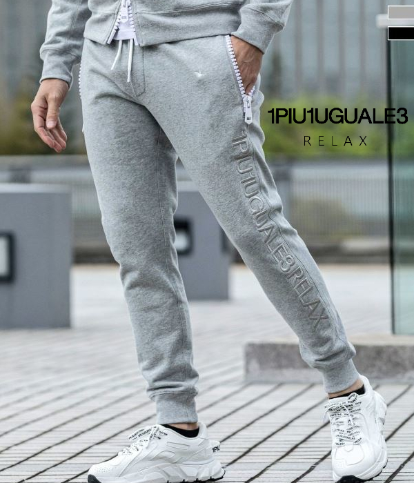 1PIU1UGUALE3 RELAX ウノピゥウノウグァーレトレ リラックス ビッグファスナー刺繍ロゴスウェットパンツ メンズ ジャージ スリム カジュアル スポーツ
