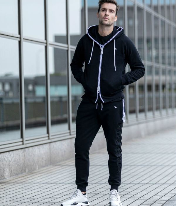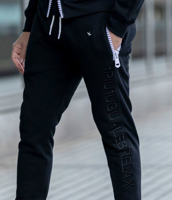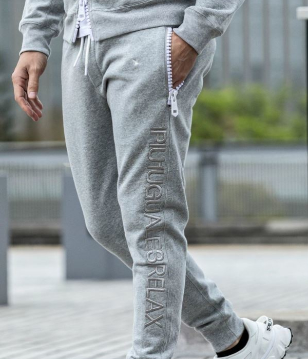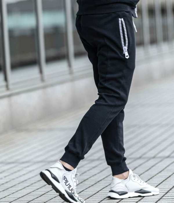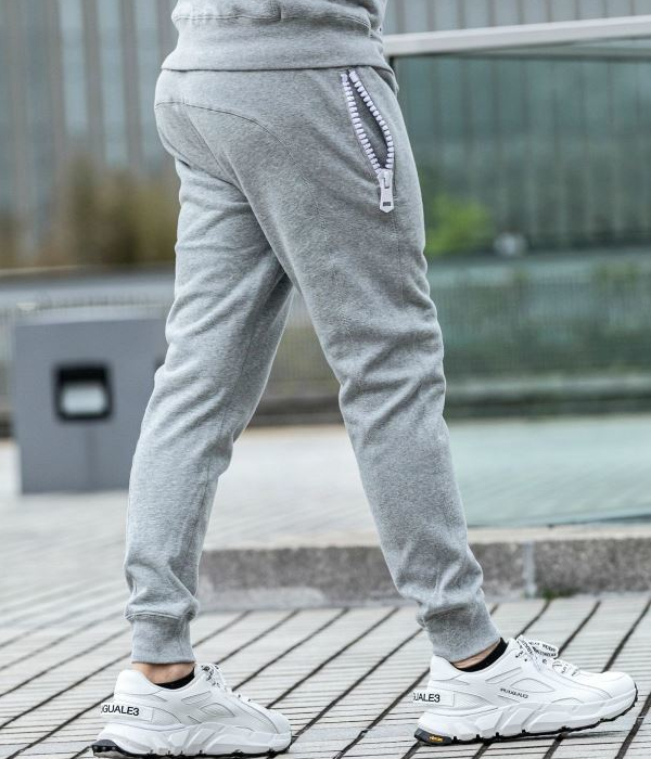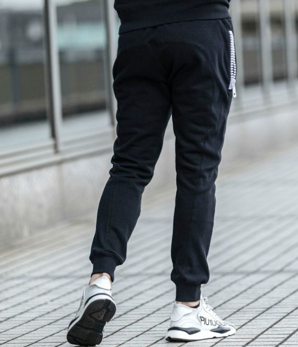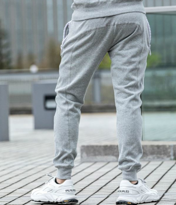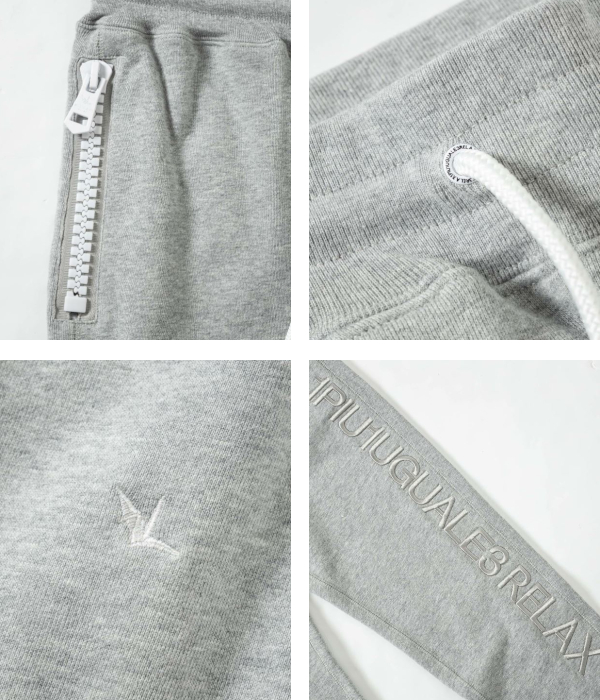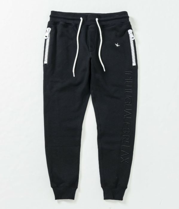 ポケットに施した大きなファスナーが定番のスウェットパンツに他とは違う遊び心をプラスします。