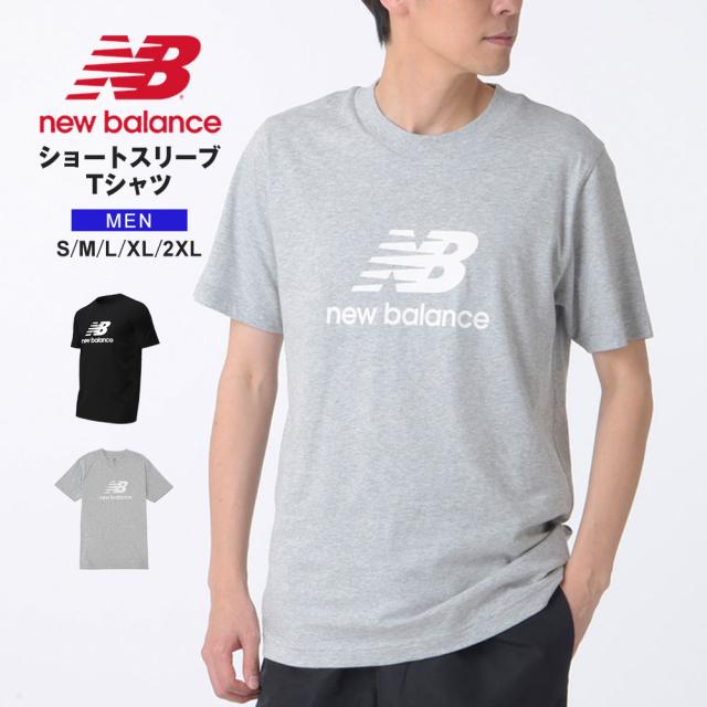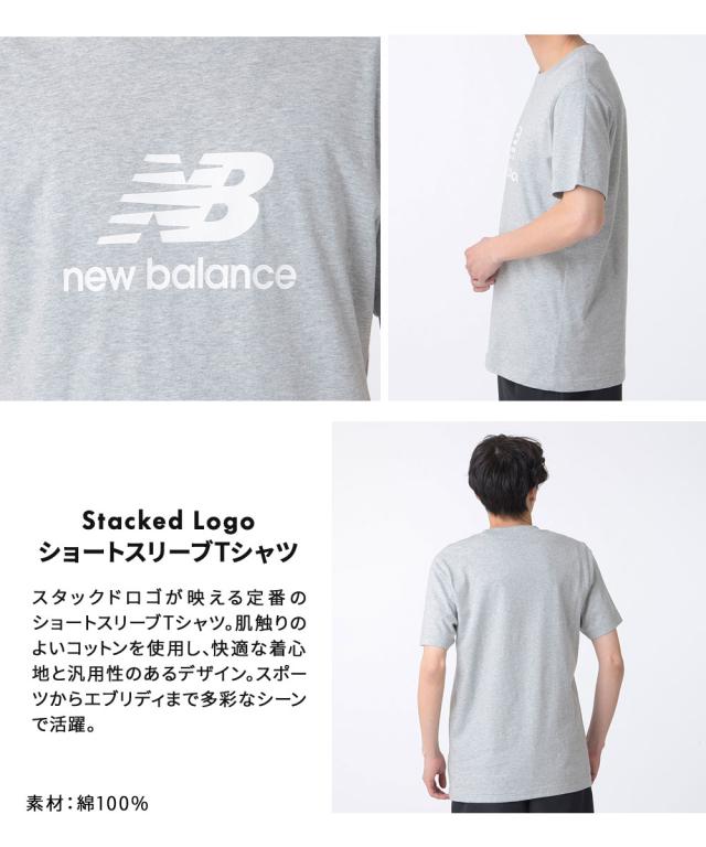 ニューバランス Tシャツ メンズ 半袖 ブランド トップス ロゴT コットン スポーツ Stacked Logo 黒 ブラック グレー 大きいサイズ ショートスリーブTシャツ New Balance MT41502