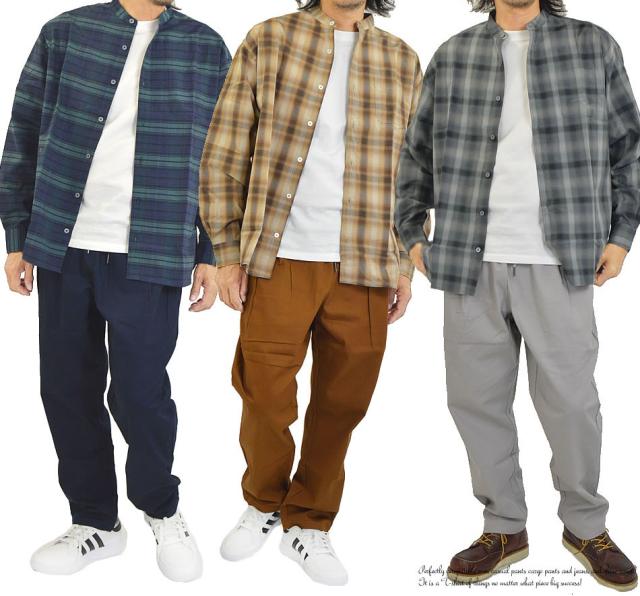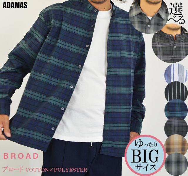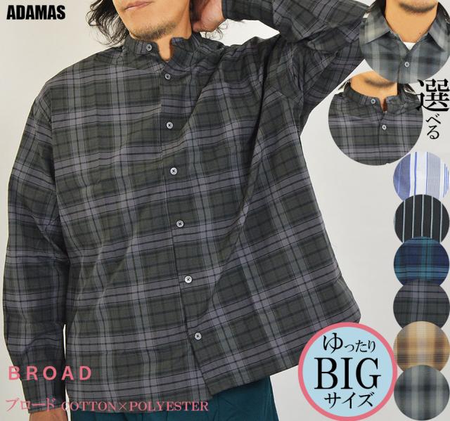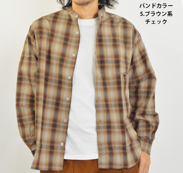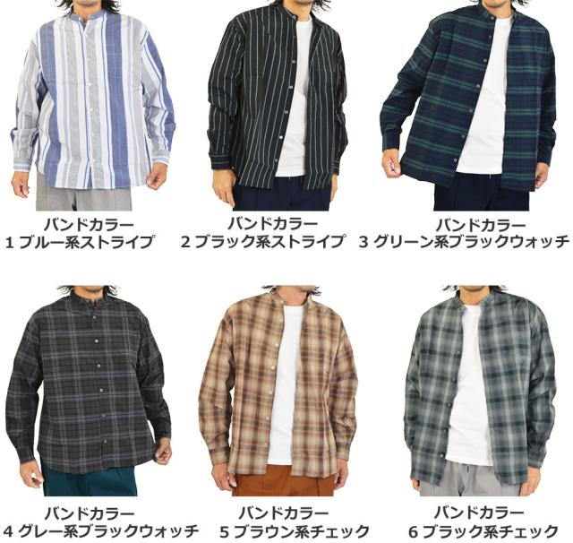 オーバーシャツ メンズ ゆったり ワイドシャツ ビッグシャツ 長袖 シャツ レギュラーカラー バンドパラー 襟なしシャツ ストライプ チェック 大きいサイズ 長袖シャツ ブロードシャツ ストライプ シャツ チェックシャツ おしゃれ 春 夏 秋 冬 カジュアルシャツ 新作