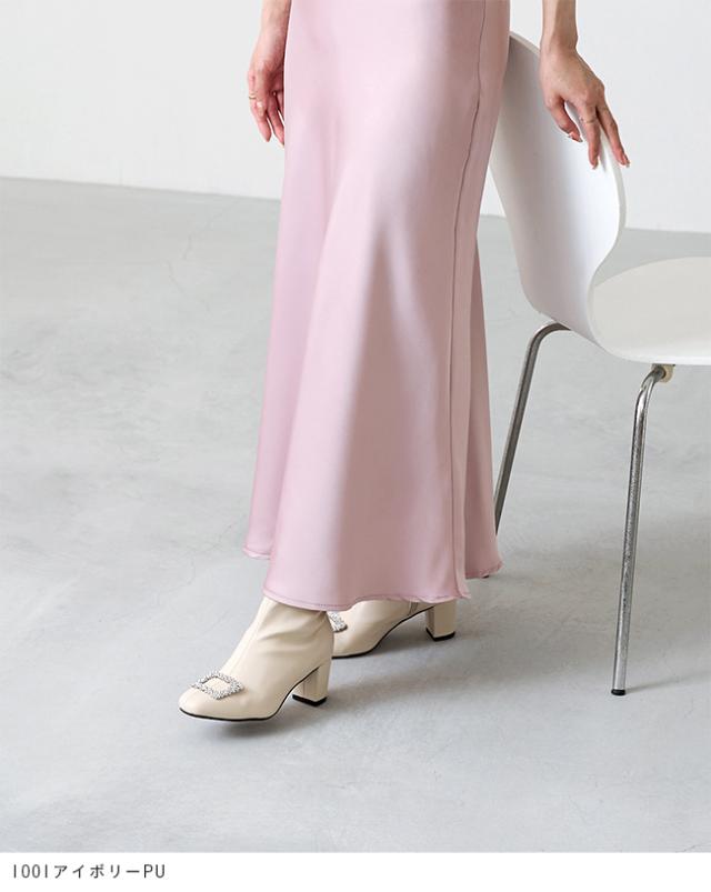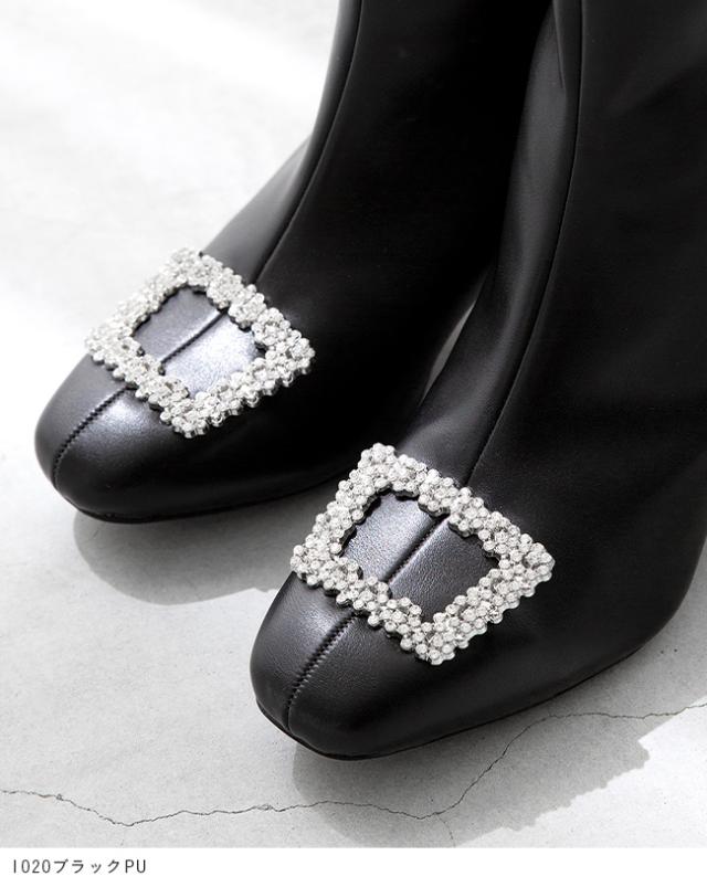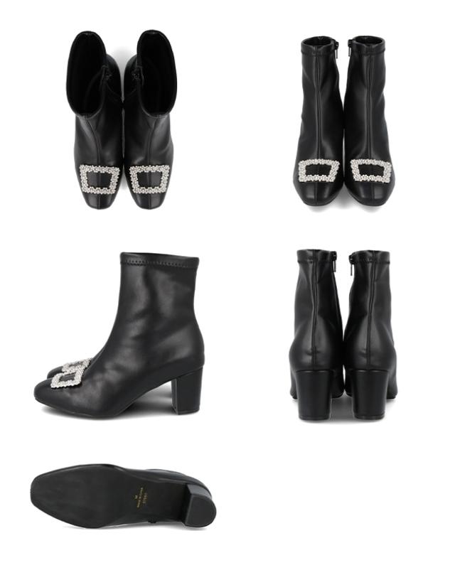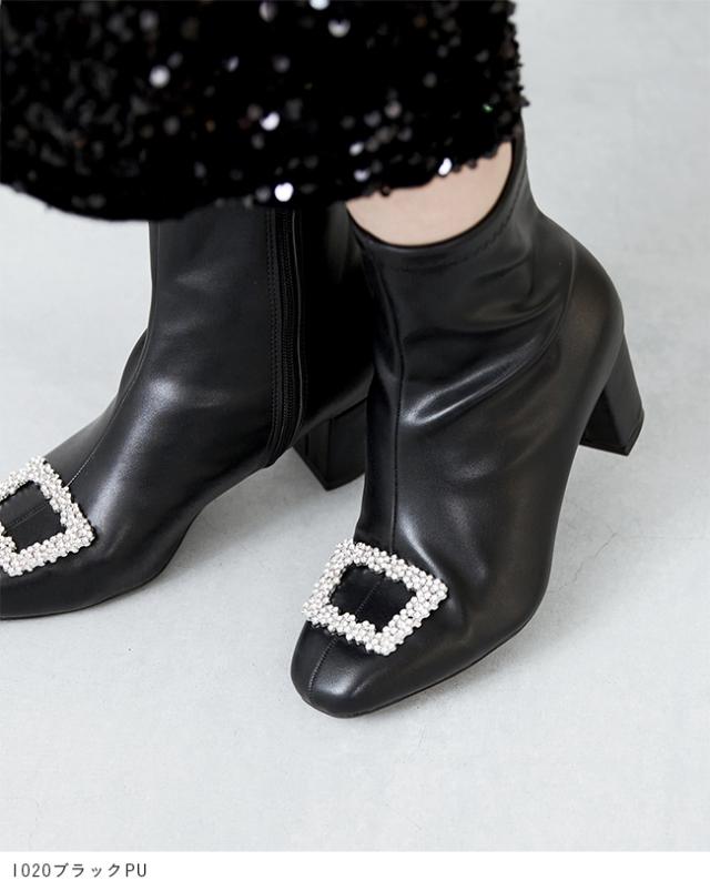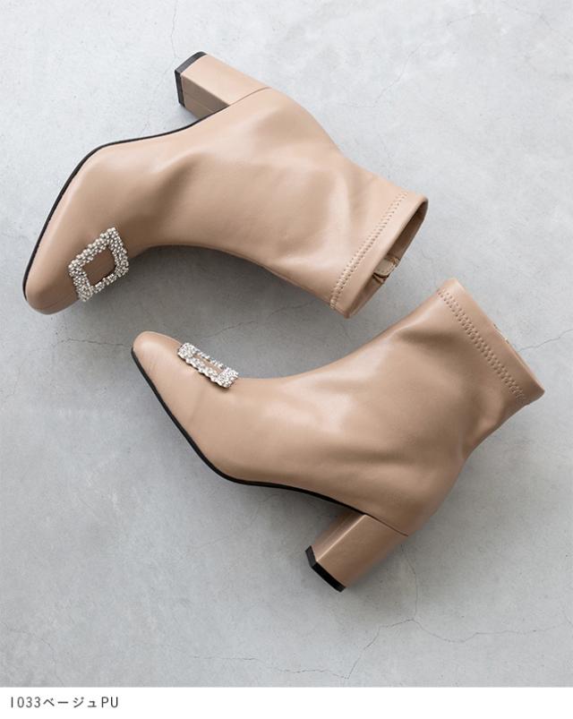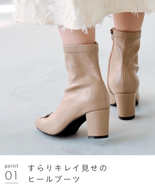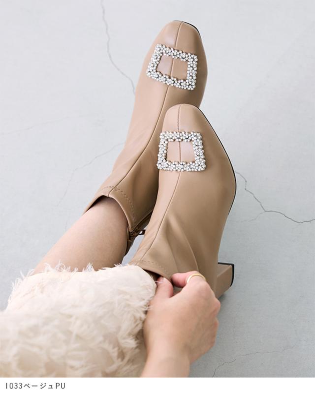 ブーツ ショートブーツ 痛くない レディース 6cmヒール 歩きやすい スクエアトゥ ビジュー モチーフシューズ 送料無料
