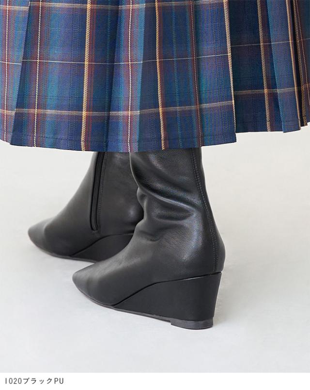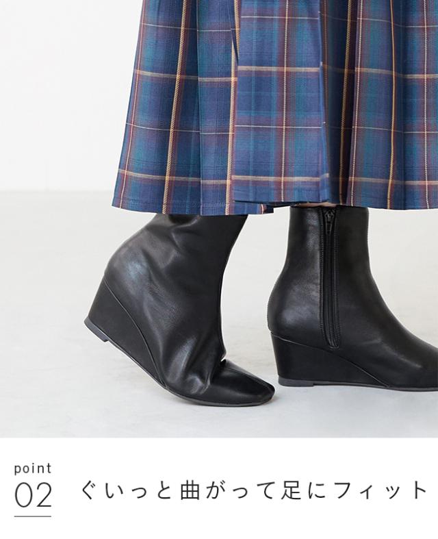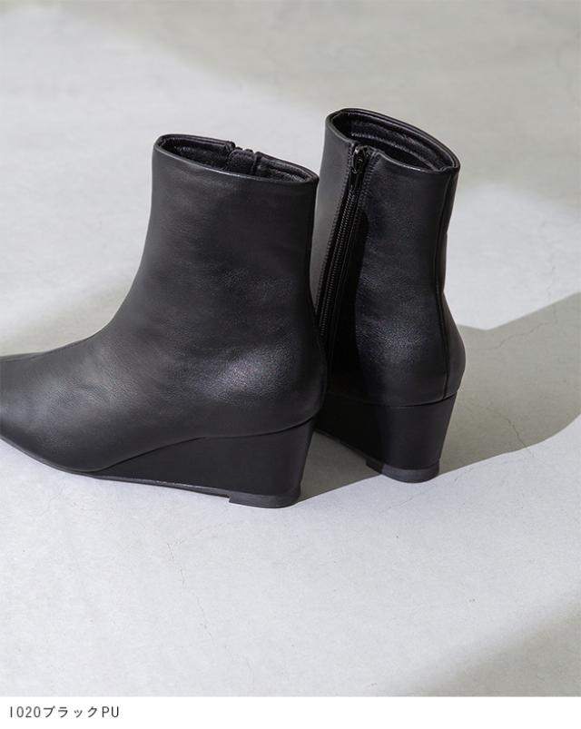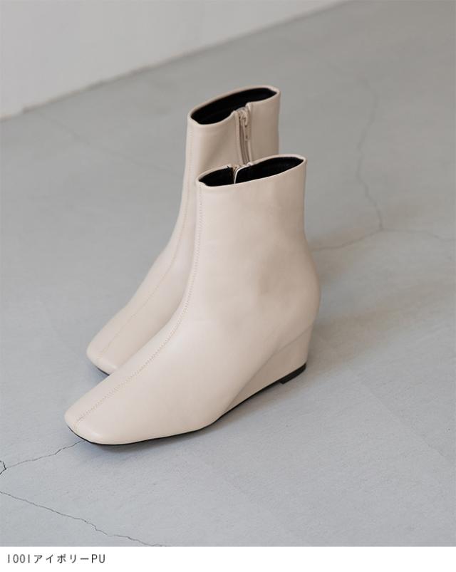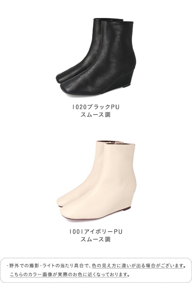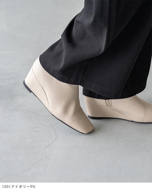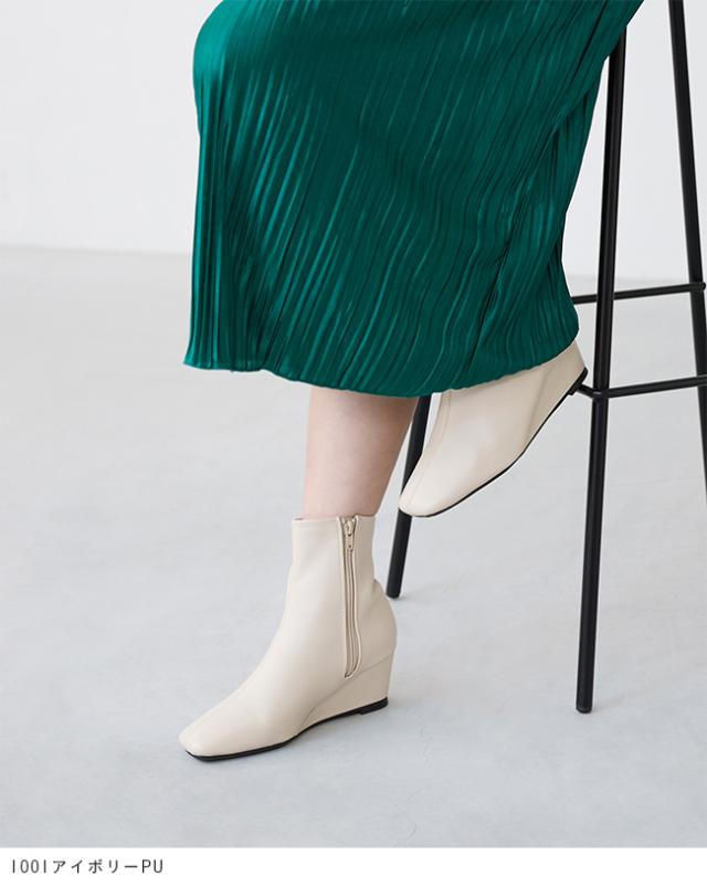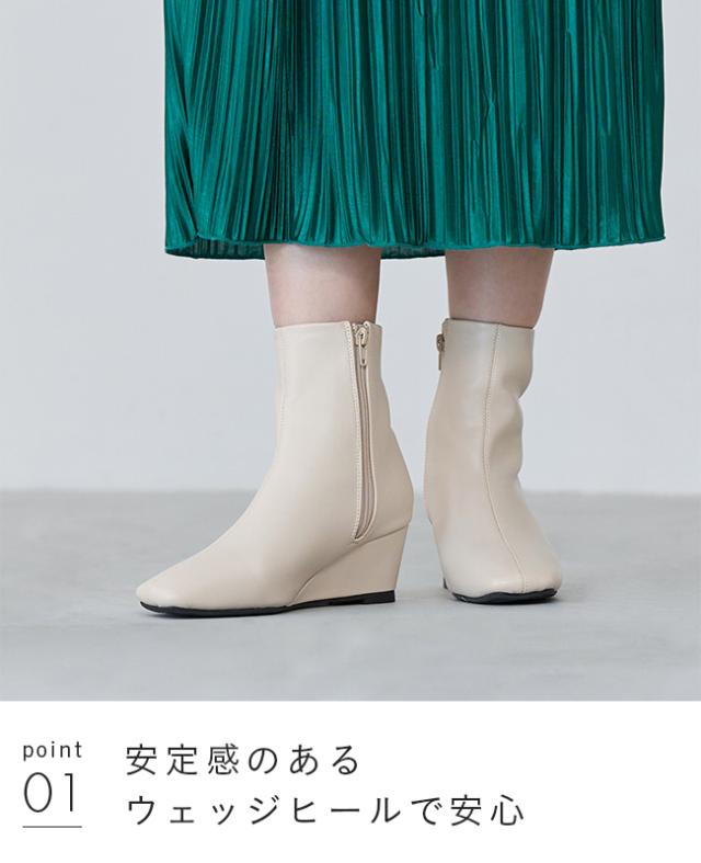 ブーツ ショートブーツ 痛くない ウェッジヒール レディース すべりにくい スクエアトゥ ウェッジソールブーツ 送料無料