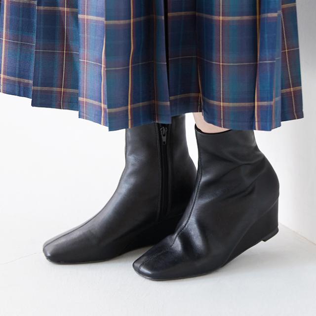 トレンドのウェッジヒールはマニッシュでモードな印象を与えてくれます。